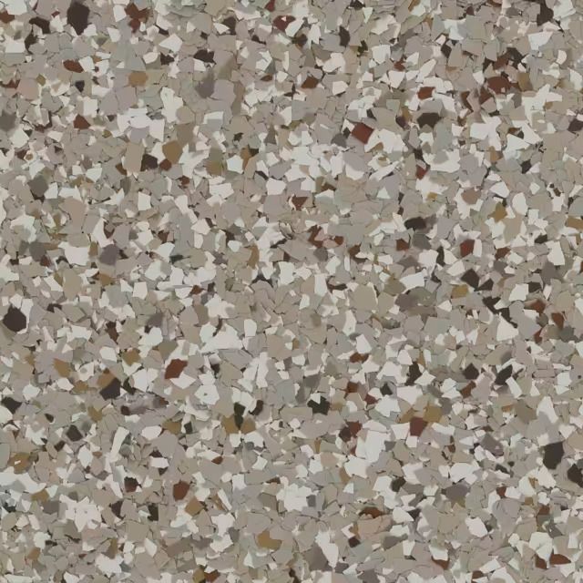 Our high performance RCC Broadcast System with ¼″ Blended Flake is one of our most popular concrete coating systems, simulating the look of terrazzo flooring.